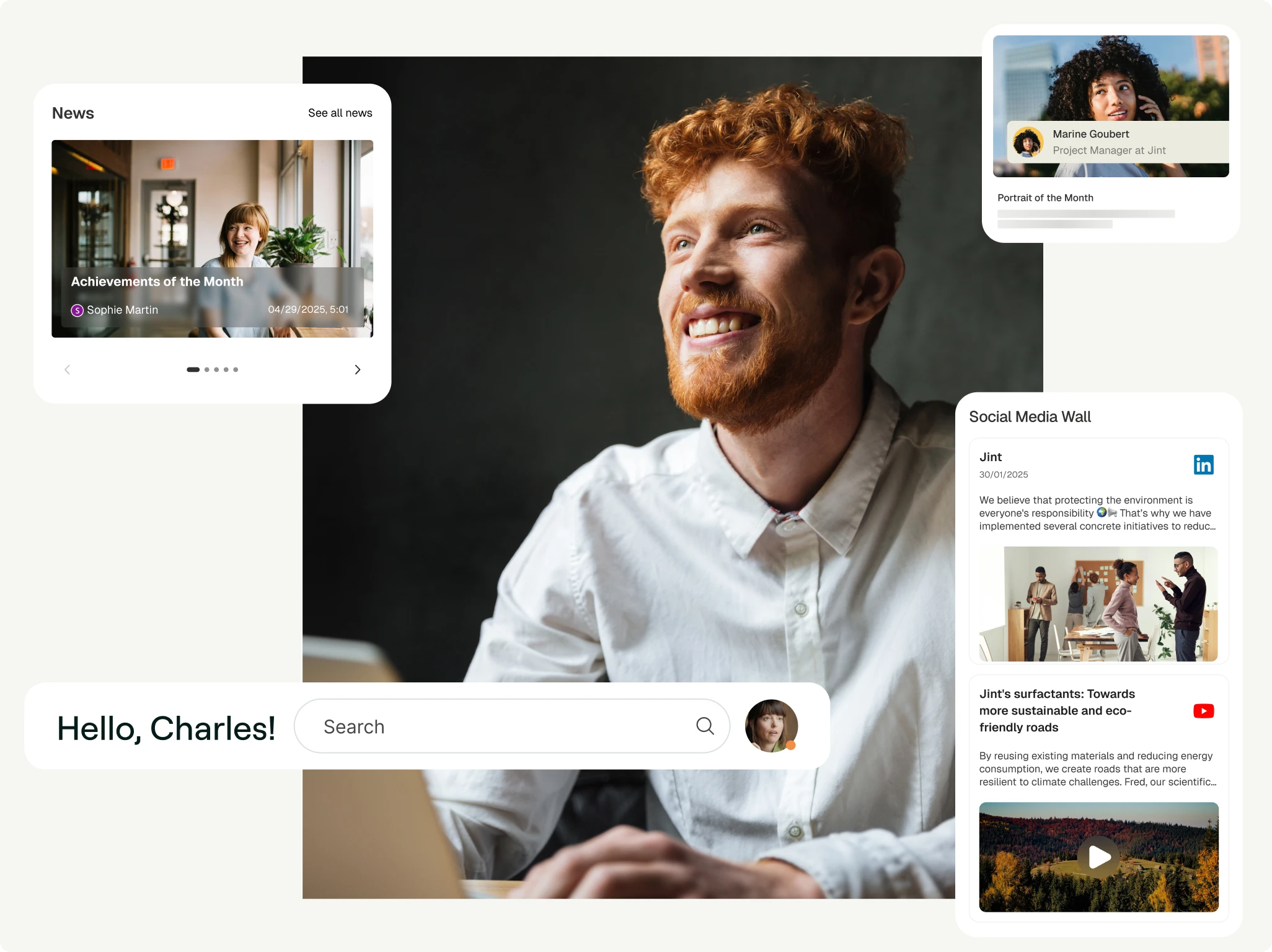 Most intranets overwhelm people with noise. Jint does the opposite. With Jint, your intranet becomes a clear, branded space where employees find what they need - fast.
