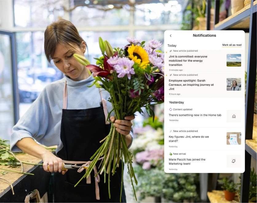 Jint Mobile App est une Digital Workplace destinée aux Frontline Workers, mais pas uniquement. Simple à déployer et personnalisable, elle vous permet de fédérer vos collaborateurs, qu’ils soient dans les bureaux, les points de vente, les ateliers ou encore en itinérance.