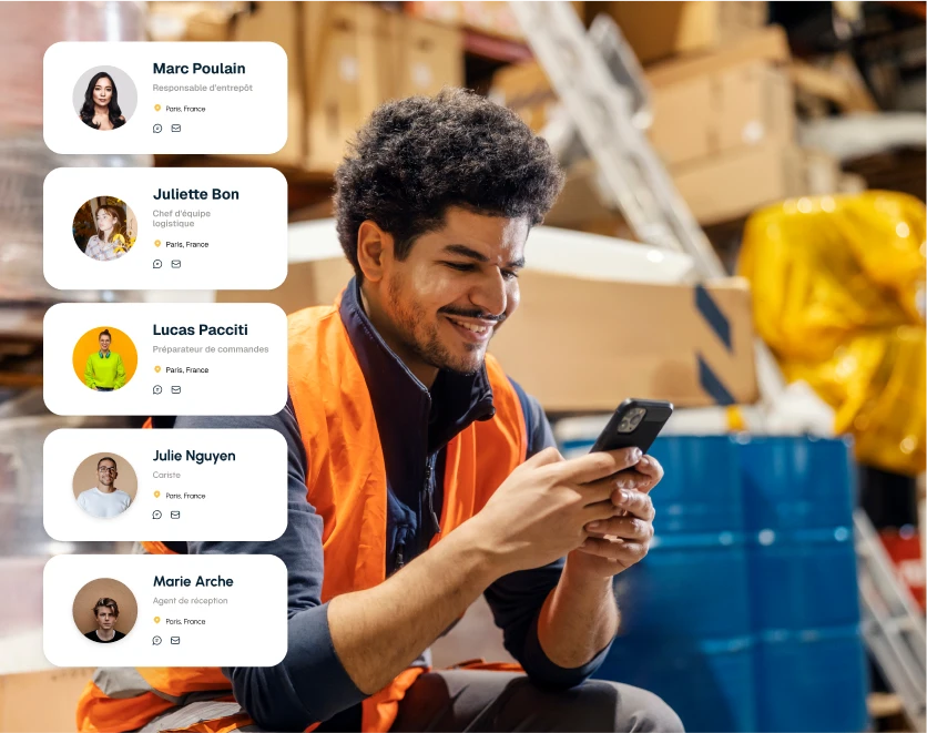 Trouvez des collègues en quelques clics, par rôle, service ou site.