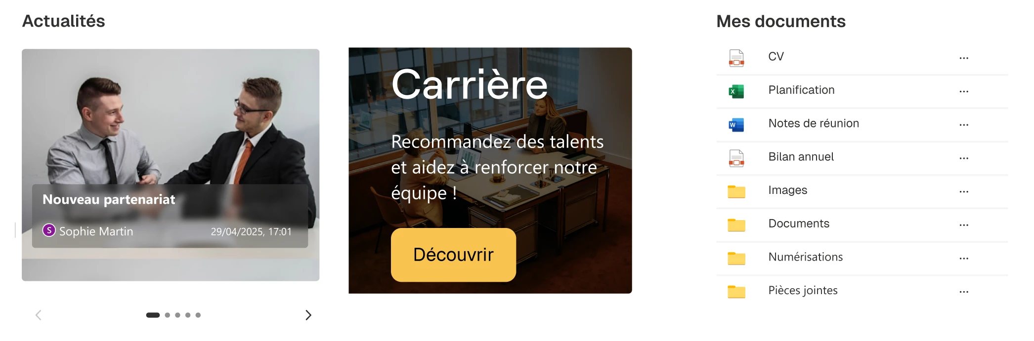 L'application mobile est directement reliée à votre intranet SharePoint : actualités, documents, contenus RH… tout reste synchronisé, à jour, et accessible depuis le terrain. Vous informez vos collaborateurs, vous structurez votre documentation, vous facilitez le quotidien opérationnel.