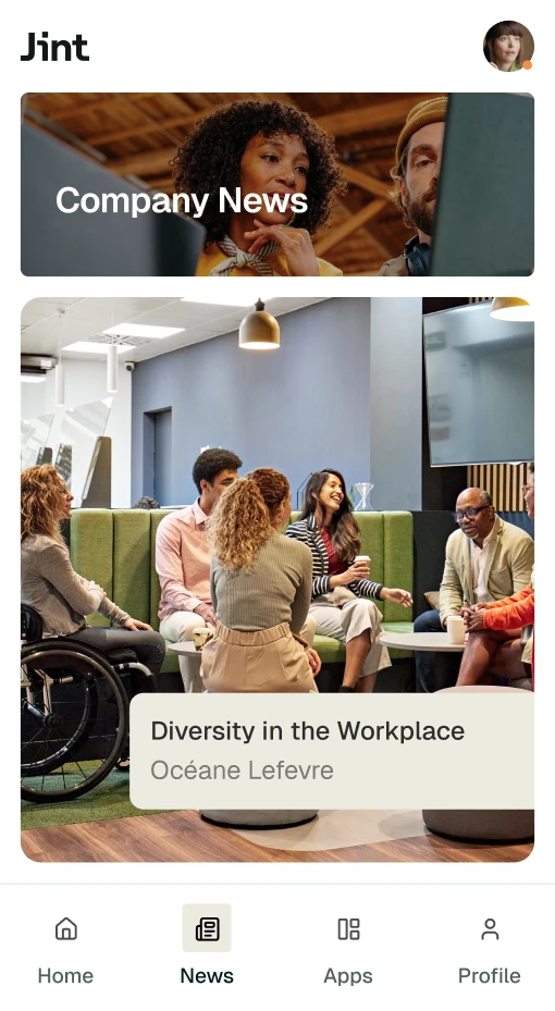 Jint's native mobile app extends your digital workplace and company communication to every employee, no matter where they are. It provides a single, secure, and easy-to-use app for news, tasks, tools, and connection. All integrated with your M365 environment.