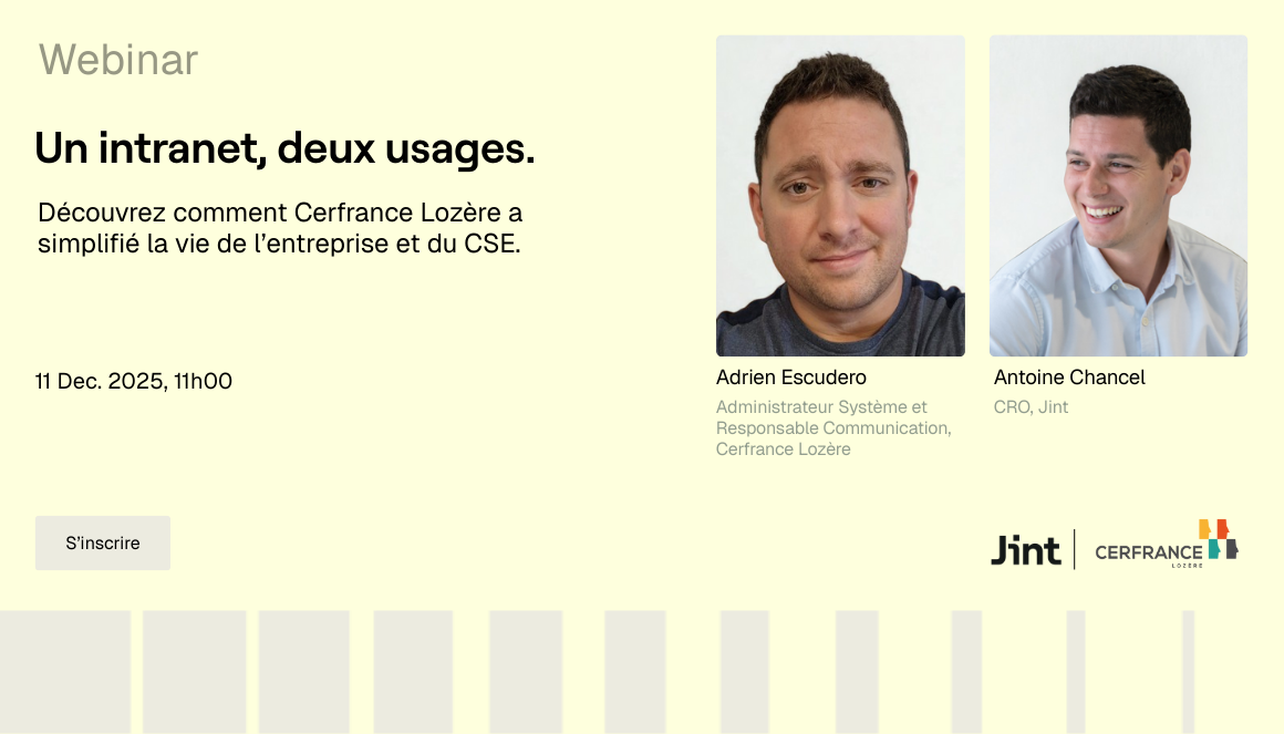 En 45 minutes chrono, découvrez comment Cerfrance Lozère a repensé son écosystème digital : réunir la communication interne (Intranet) et les avantages salariés (CSE) au sein d'une plateforme unique, simple et visuelle.