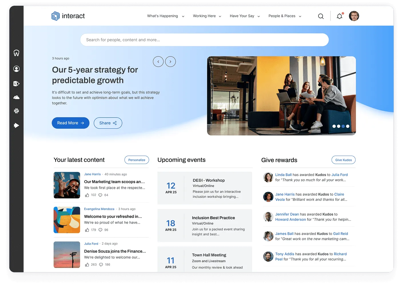 Interact is a comprehensive intranet software platform known for its continuous innovation and service orientation. It offers contextual content management, optimized workflows, AI integrated into user journeys, and a flexible architecture. It is especially suited to sectors such as healthcare, finance, and retail.