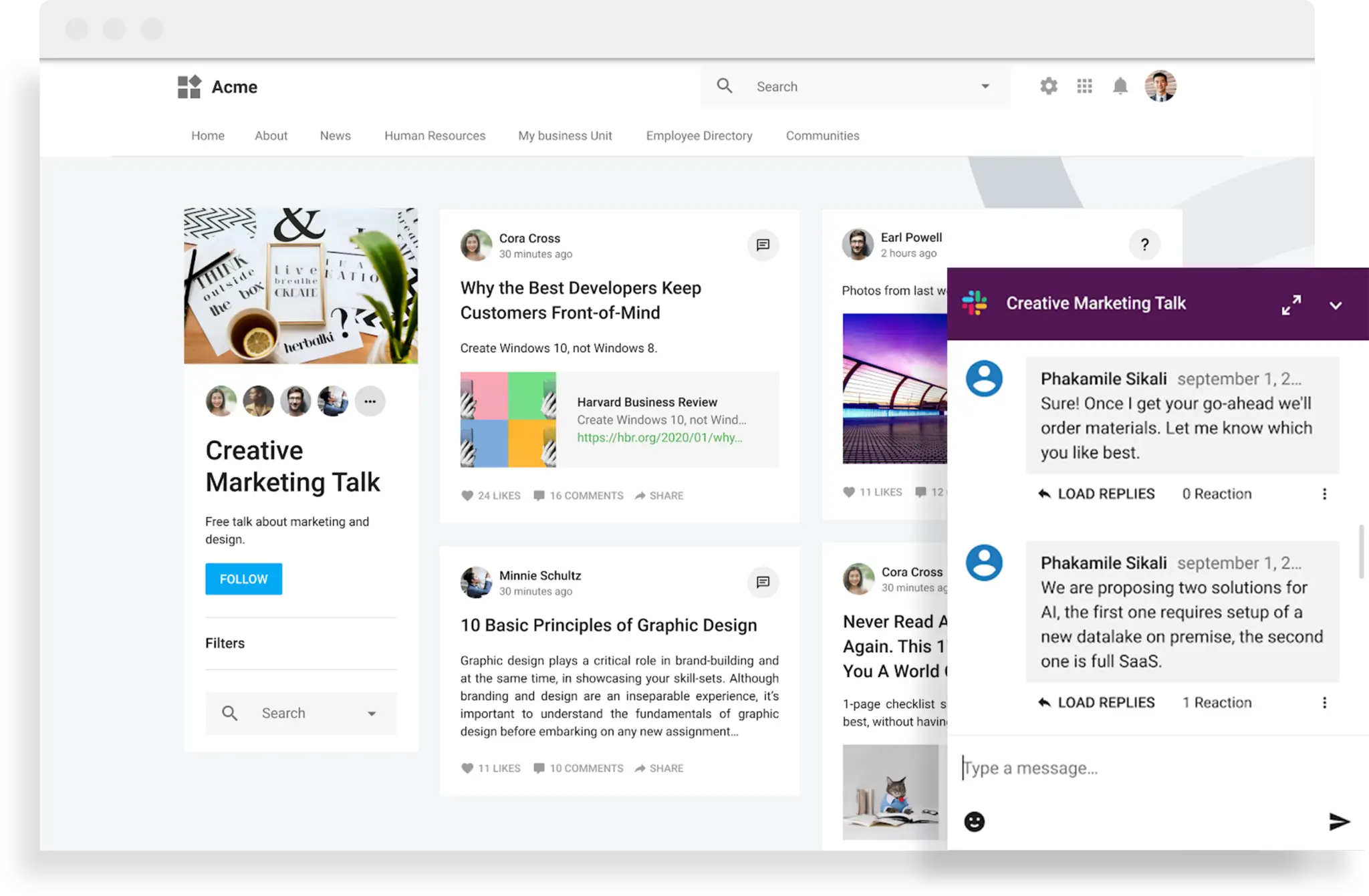 A modular intranet focused on social engagement, community building, and dynamic content formats.